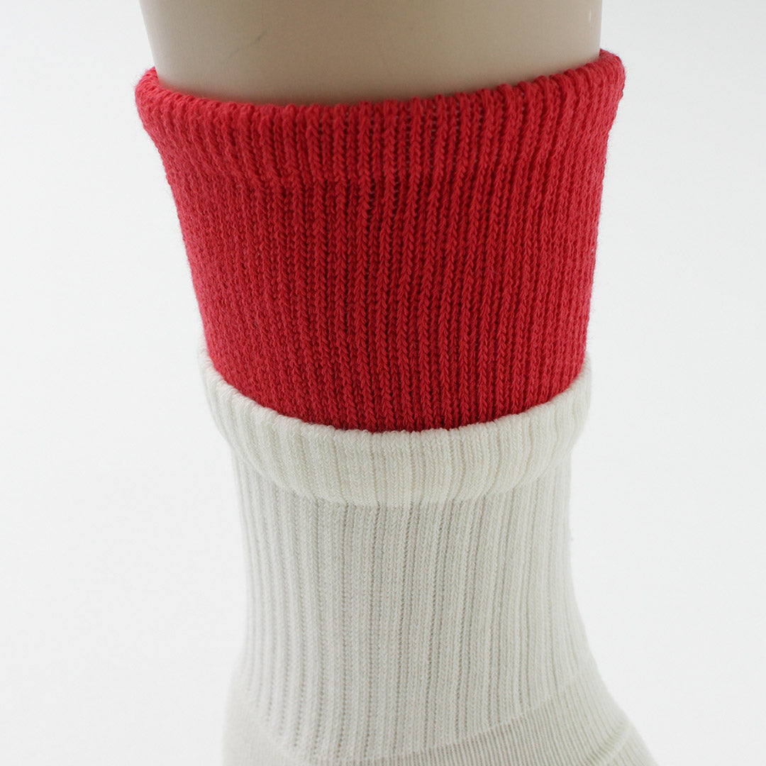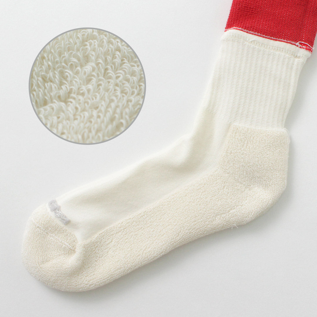 The sole portion from the toe to the heel is made of thick pile knitting. It has excellent cushioning properties and absorbs shock when walking. In addition, because the pile is like a towel, it is highly absorbent and reduces steaminess even when sweating.