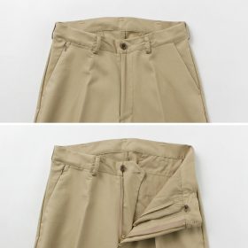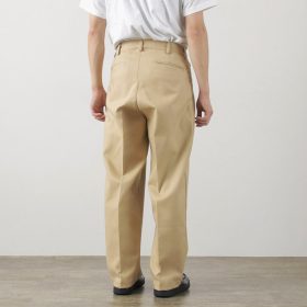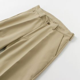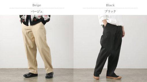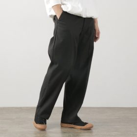 Wide pants design with roominess in the waist, hips, and thighs. The tapered silhouette that gradually narrows towards the hem ensures a clean silhouette without being loose. Enjoy the comfortable fit while maintaining elegance.