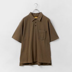 The collar is a classic polo neck design, and the large front buttons add a casual touch.