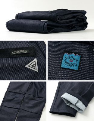 Based on SUNNY SPORTS’ popular climbing trousers ‘Trail 3D Trousers’, this item is designed in RAG’s signature urban, casual denim fabric.
