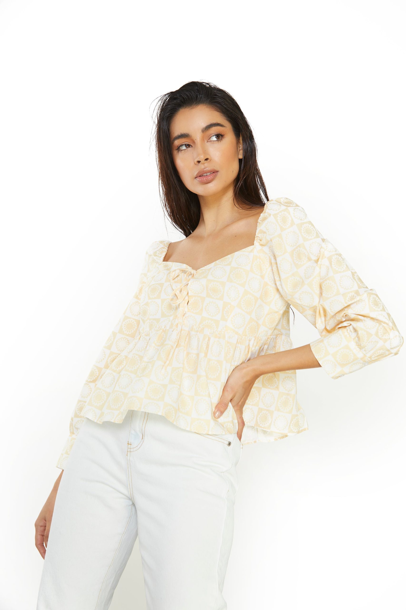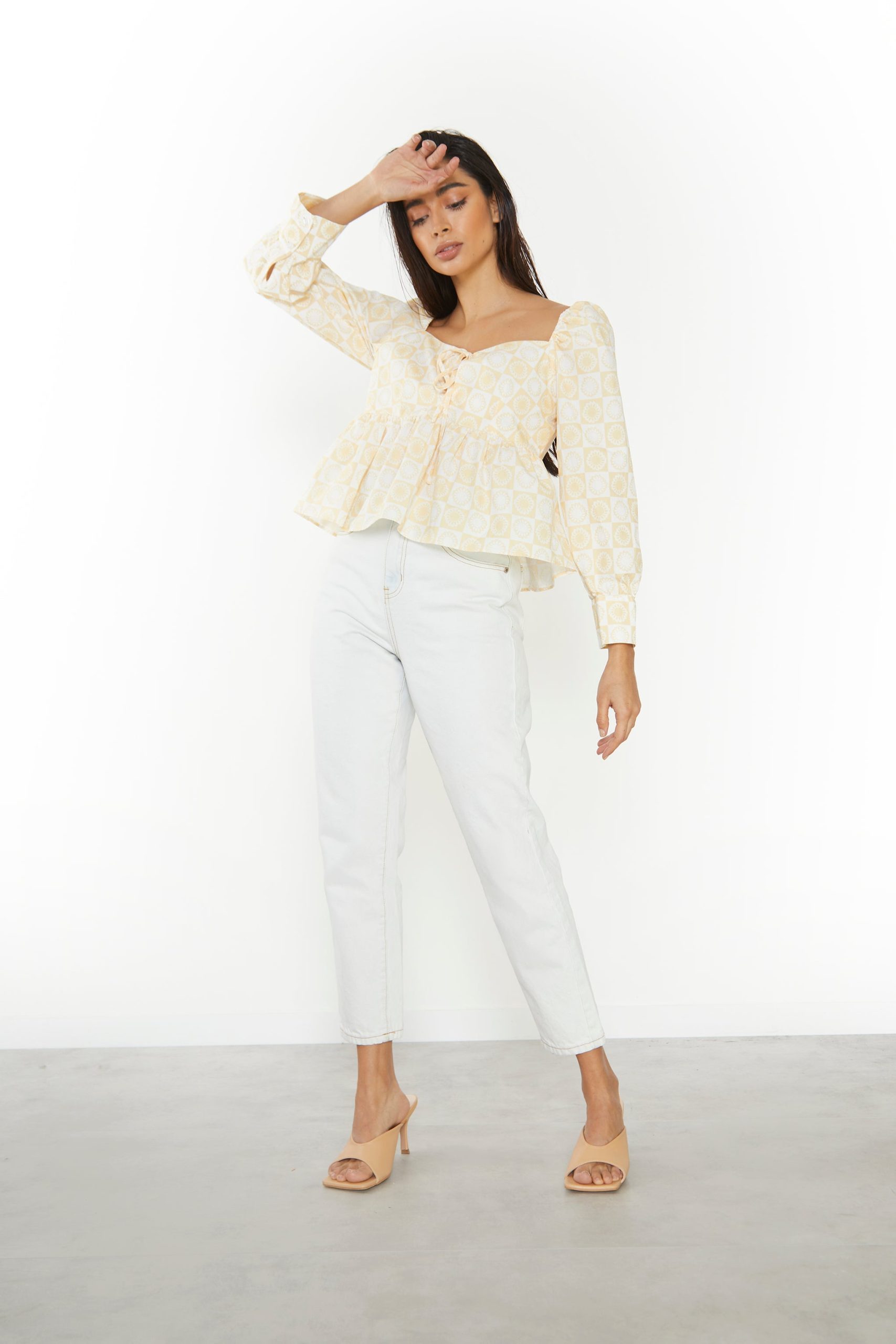 Glamorous Sunflower Check Sweetheart Peplum Blouse. This blouse is the perfect piece to add to your wardrobe this season. Featuring sweetheart neck and peplum detail and puff sleeves and a flattering fit, this will look great on you! Style with some jeans and chunky sandals for the ultimate evening look this season.