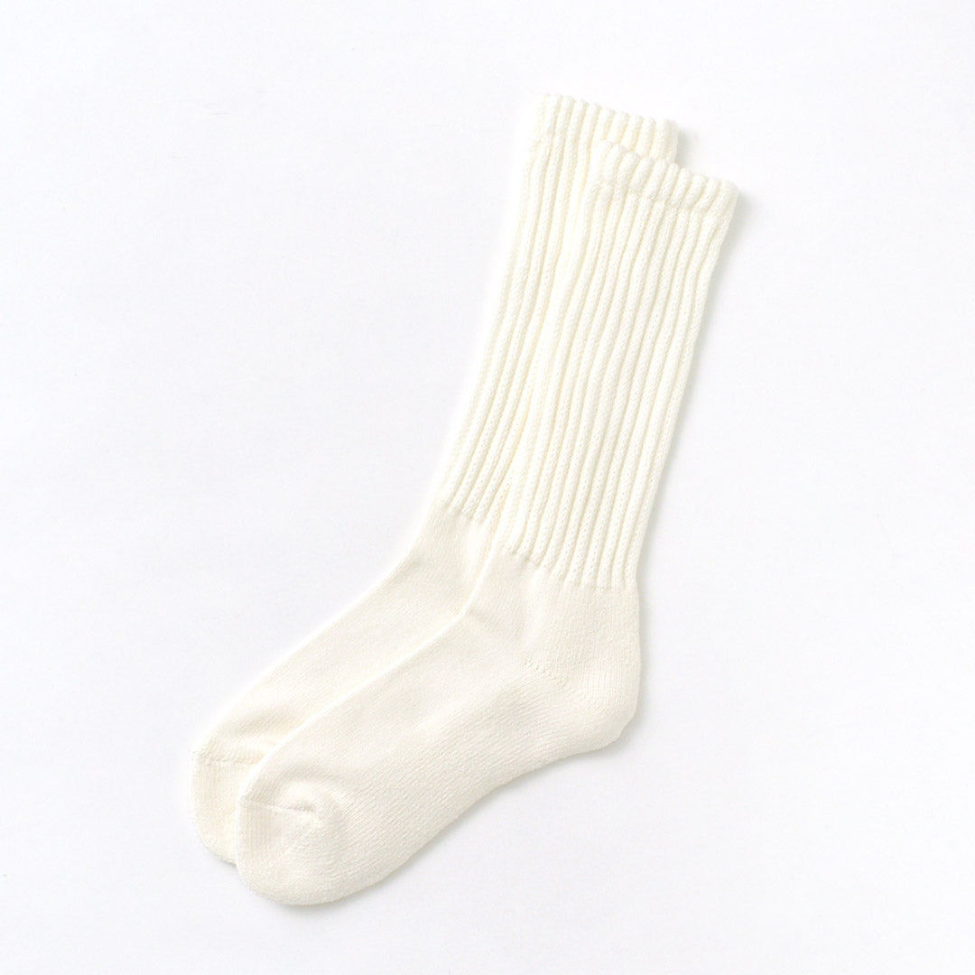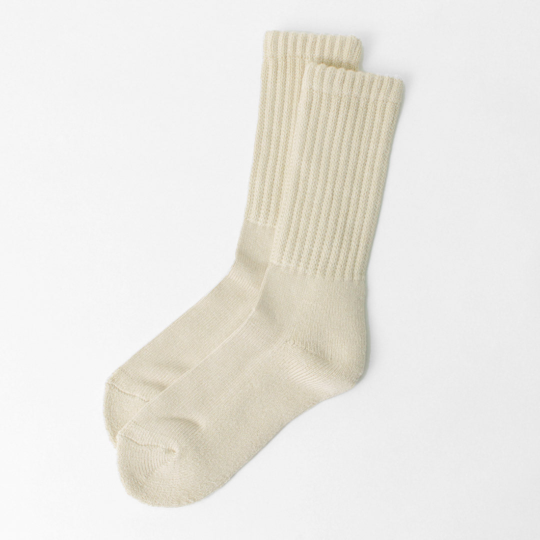 From “ROTOTO”, these low-gauge socks feature a thick pile knit at the bottom of the foot and a slightly longer length.