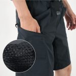 These shorts are made of “Tech WEAVE”, a stretchy fabric that is windproof, water resistant, quick drying, and UPF 50+ UV resistant.