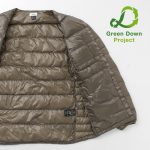 The nylon fabric is made of recycled nylon, and recycled down is enclosed in the padding. Recycled down is cleaned and processed again and reused as high-quality down with its original functions.