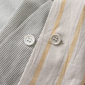 Made from a lightweight fabric of 90% cotton and 10% linen, the material has been gently washed in small batches to create many creases, giving it texture. This reduces the surface area touching the skin, providing a cool and comfortable feel.