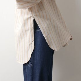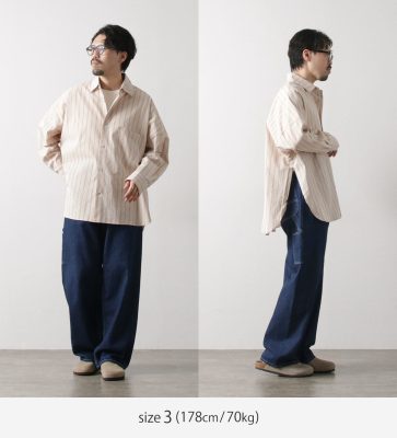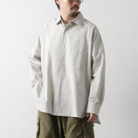 A wide silhouette that allows for airflow, the relaxed fit created by ample body width provides a very relaxed feel. Pair it with wide pants for a balanced, stylish look.