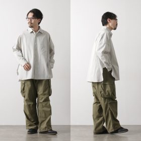 Founded in 2004 as a pants brand, BASISBROEK’s name means “basic pants” in Dutch. Using carefully selected fabrics domestically, they offer a wide range of products from pants to shirts and coats. Incorporating various design elements, they focus on silhouette and comfort, enhancing individuality through fabric treatments, offering modern everyday wear.
