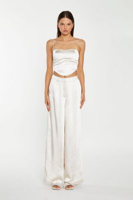 Glamorous Womens Champagne Satin Corset Top. Add some glam to your wardrobe with this Corset Top. It features on-trend corset detailing and a shirred back panel for a comfy fit! Matching trousers give this look an extra bit of glam – the perfect combination of style and comfort.