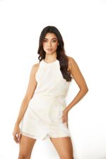 Limited Edition Glamorous White Gold Metallic Crochet Lace Up Front Mini Dress Glamorous – Don’t Miss Out!