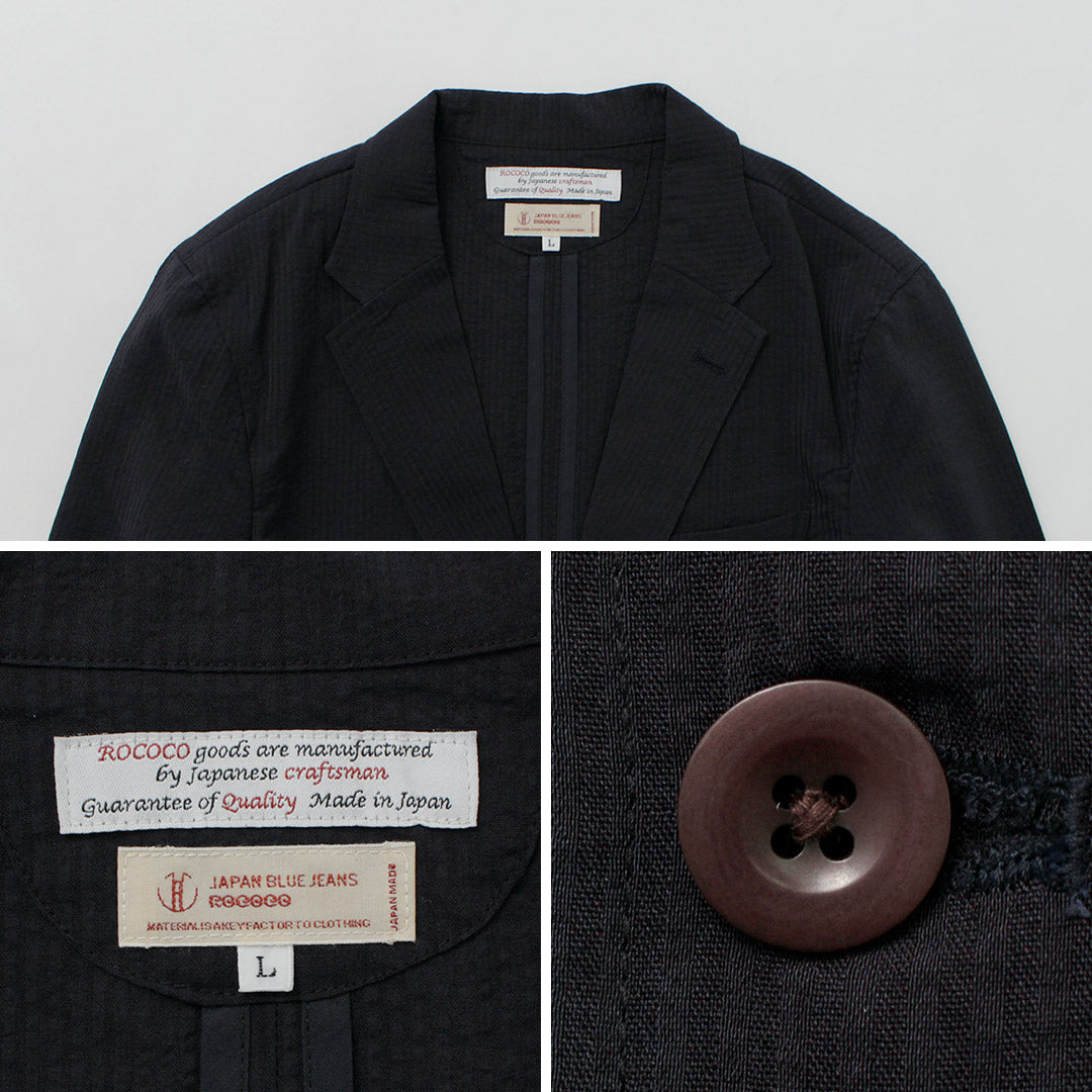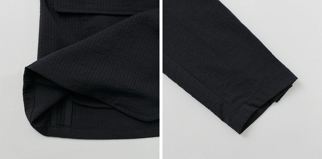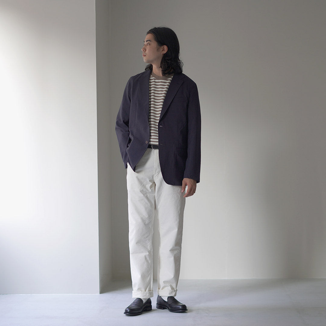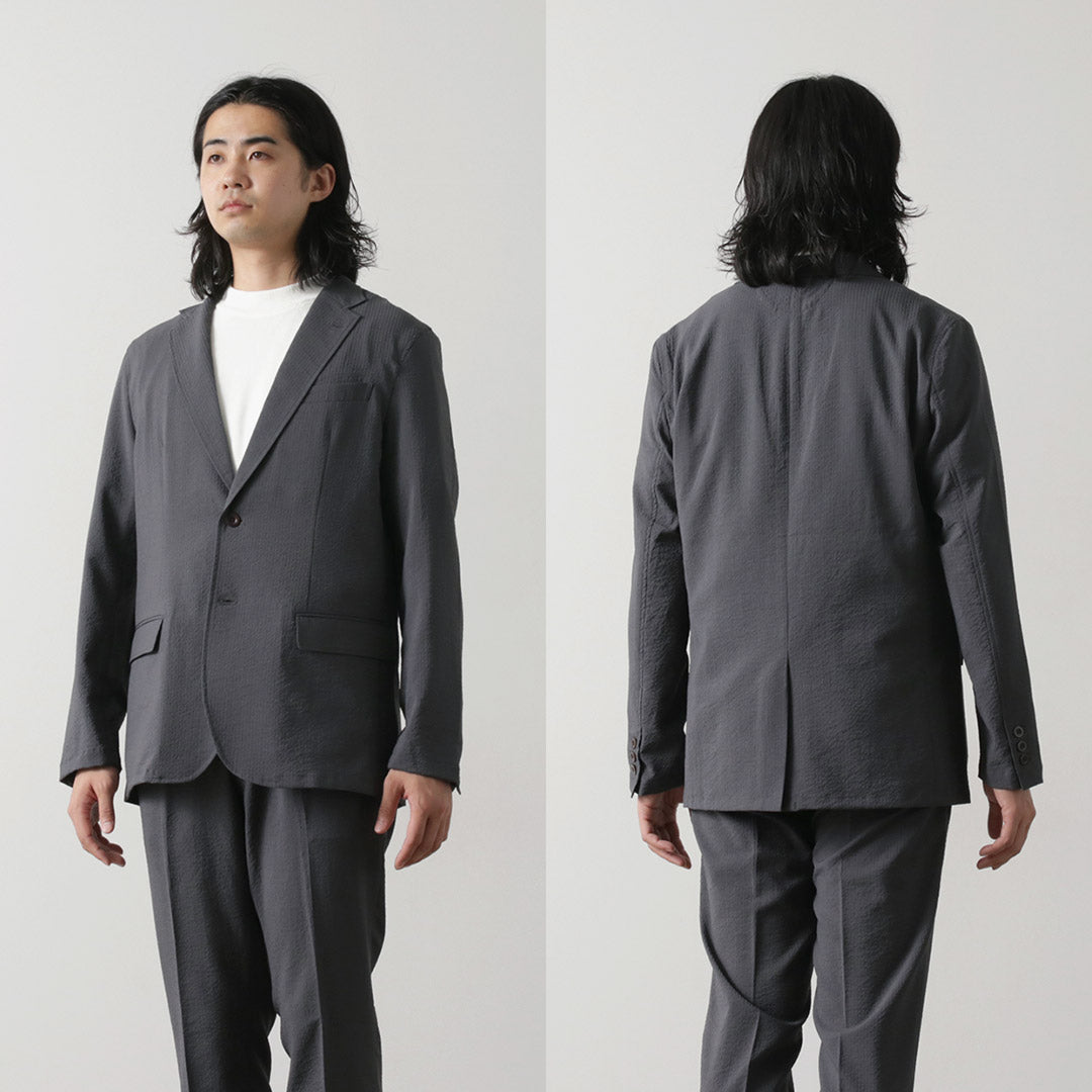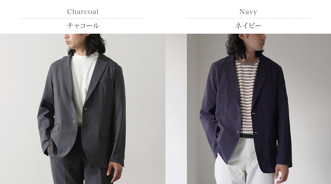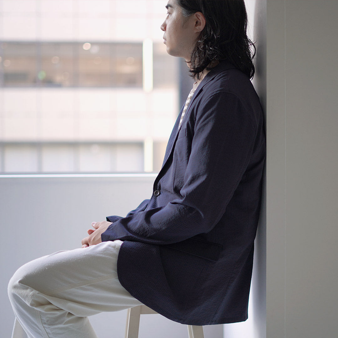 Wearing it as a set-up with matching pants is also recommended. Especially in business scenes where a jacket is needed during the sweaty season, this seersucker set-up, known for its dry touch and coolness, allows you to wear it comfortably without worrying about stickiness.