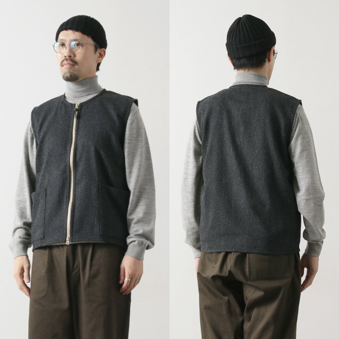 Home MENS OUTERWEAR Bestseller RE MADE IN TOKYO JAPAN / Wool Cashmere Kersey Crew Vest – Ends Soon!