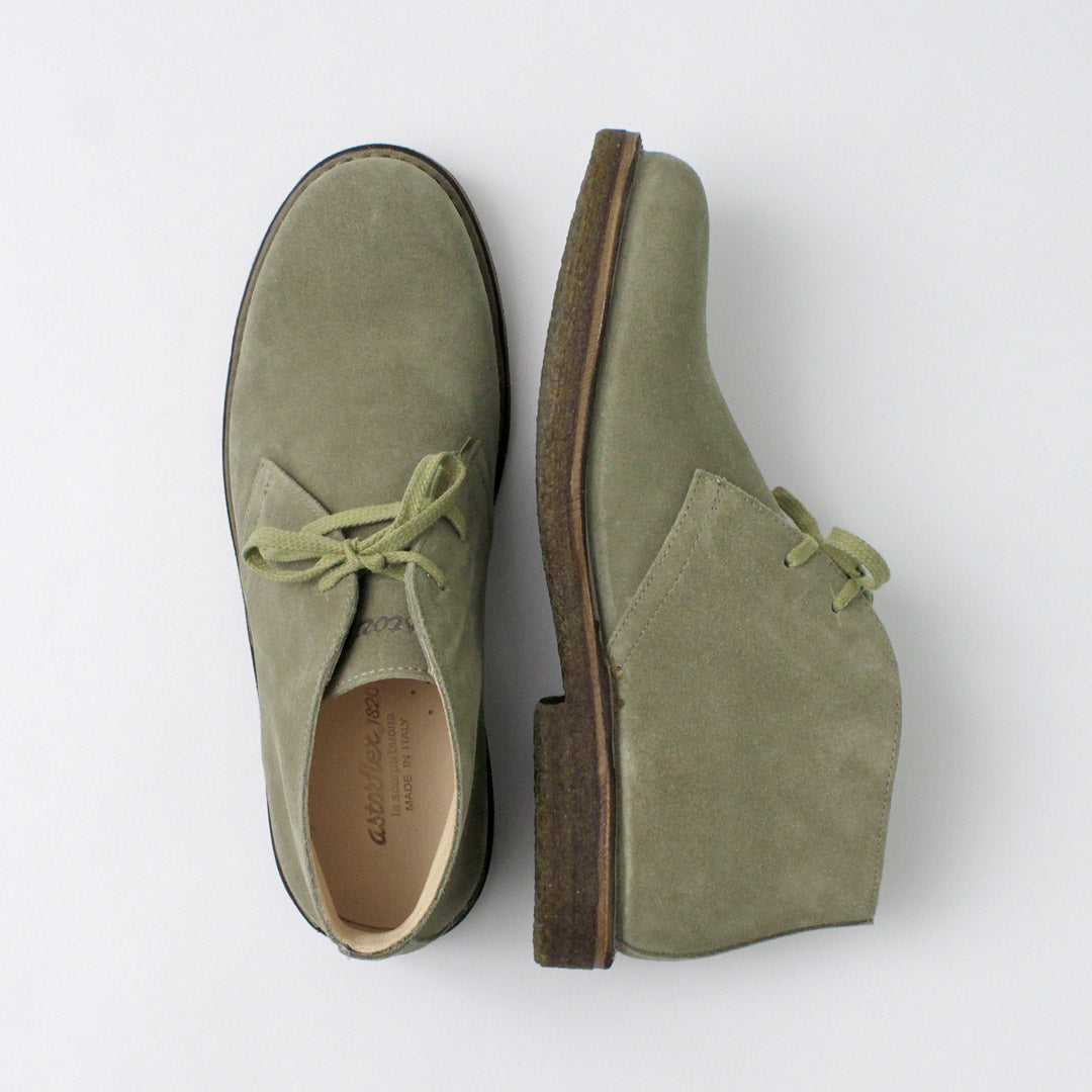 Though desert boots originated in England, this model boasts a refined “Made in Italy” aesthetic.