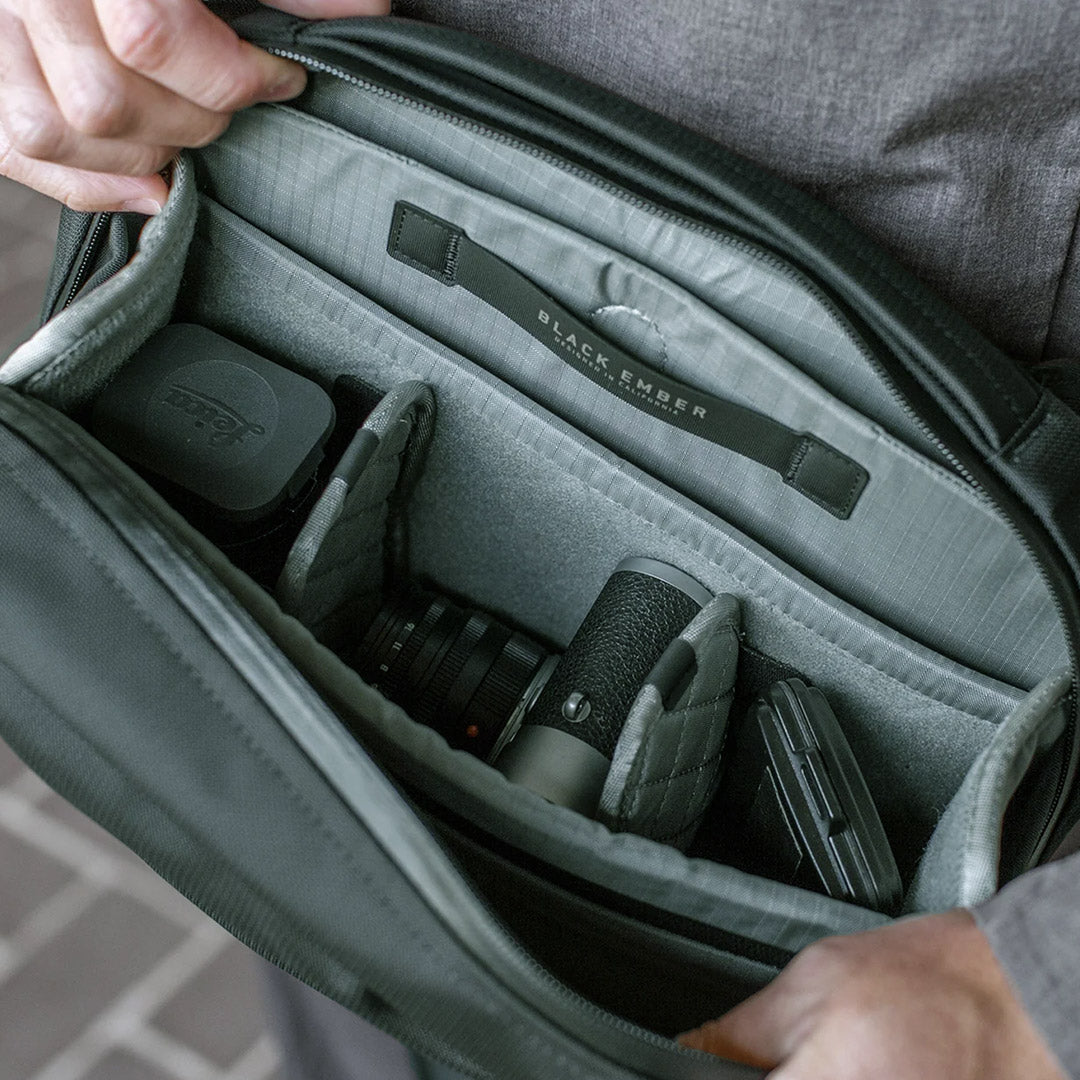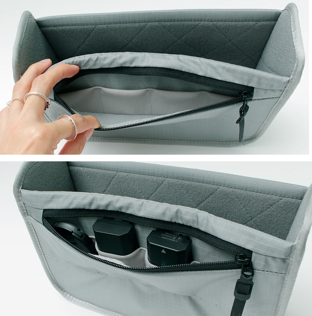 For the outer fabric, they use ripstop material similar to the lining of Grip Sling, known for its tear strength and abrasion resistance, ensuring long-term use with confidence. The interior is lined with a brushed nylon fabric featuring shock-absorbing padding to protect your valuable gear.