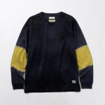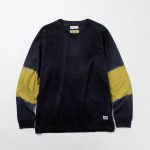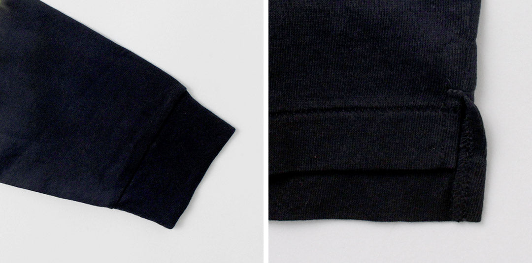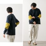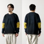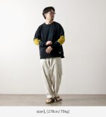 The basic crewneck collar is complemented by bold arm motifs that catch the eye, while the other details are kept simple, making the design easy to wear and versatile.
