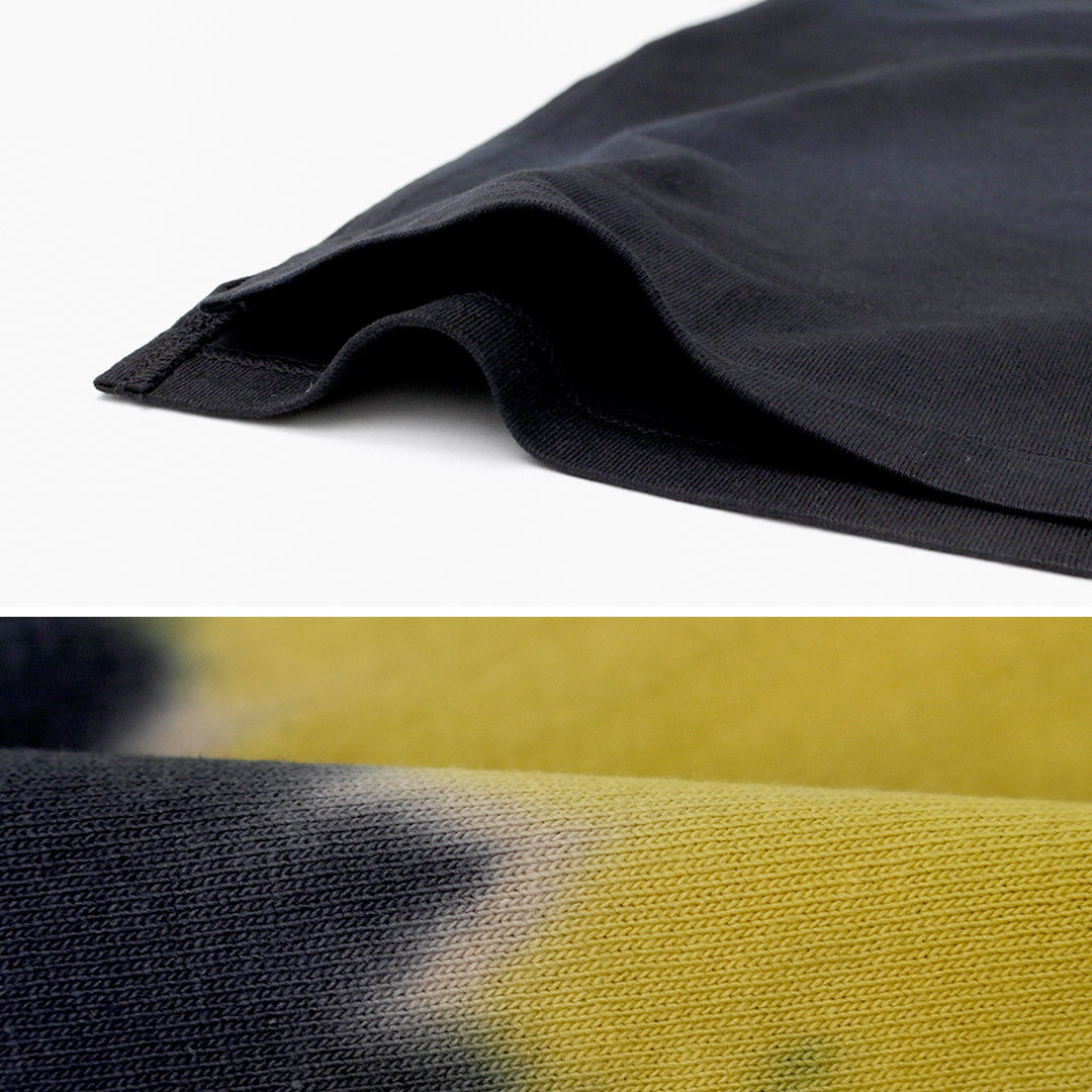 The tie-dye technique is an artwork by the artist YUKI, resulting in a one-of-a-kind piece. The overlapping colors and randomly expressed patterns give the garment a unique personality that can’t be found elsewhere.