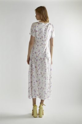 Glamorous Women’s Lilac Water Colour floral V-Neck Maxi-Dress. Our Lilac Water Colour Floral V-Neck Maxi-Dress is a dreamy piece that brings a touch of romance to your wardrobe. The soft lilac base is adorned with a delicate watercolour floral print, creating a whimsical and feminine look. The flattering V-neckline adds a subtle allure, while the A-line silhouette flows gracefully from the waist, ensuring comfort and elegance. Short sleeves provide just the right amount of coverage for warm days or evening events. We’ve included a concealed zip fastening at the back for a smooth, polished appearance. This maxi dress is perfect for garden parties, outdoor weddings, or any occasion where you want to feel effortlessly beautiful. The ethereal design pairs wonderfully with simple sandals for a casual daytime look, or dress it up with heels and statement jewellery for more formal affairs. The flowing fabric moves with you, creating a sense of grace and ease. This dress is ideal for those who love to express their softer side while making a stylish statement.