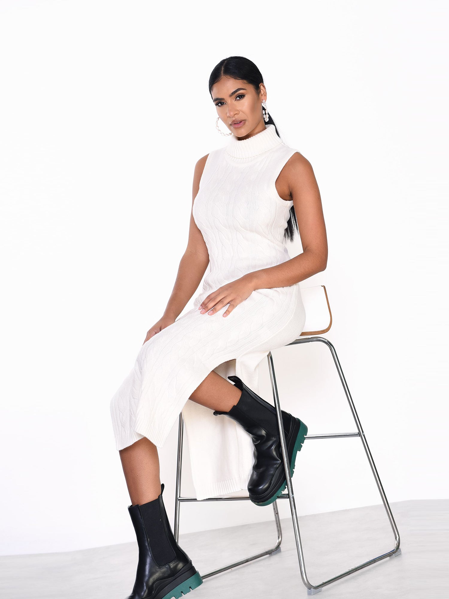 Clearance Price Glamorous Cream side Split High Neck Knit Midi Dress Glamorous – Almost Gone!