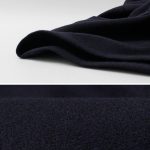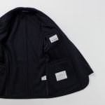 The fabric is a blend of wool and nylon, offering a refined melton material with durability and structure. Its refined navy color enhances the sense of sophistication.