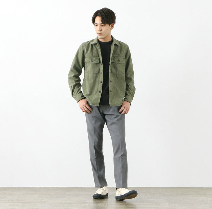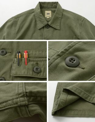 This jacket draws inspiration from the fatigue jackets worn by the US military during the Vietnam War. It exudes a plain yet sophisticated aura. Despite its simple design, it excels in strength and functionality. Simply wearing it adds a distinctive presence.