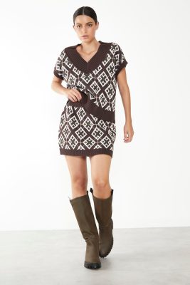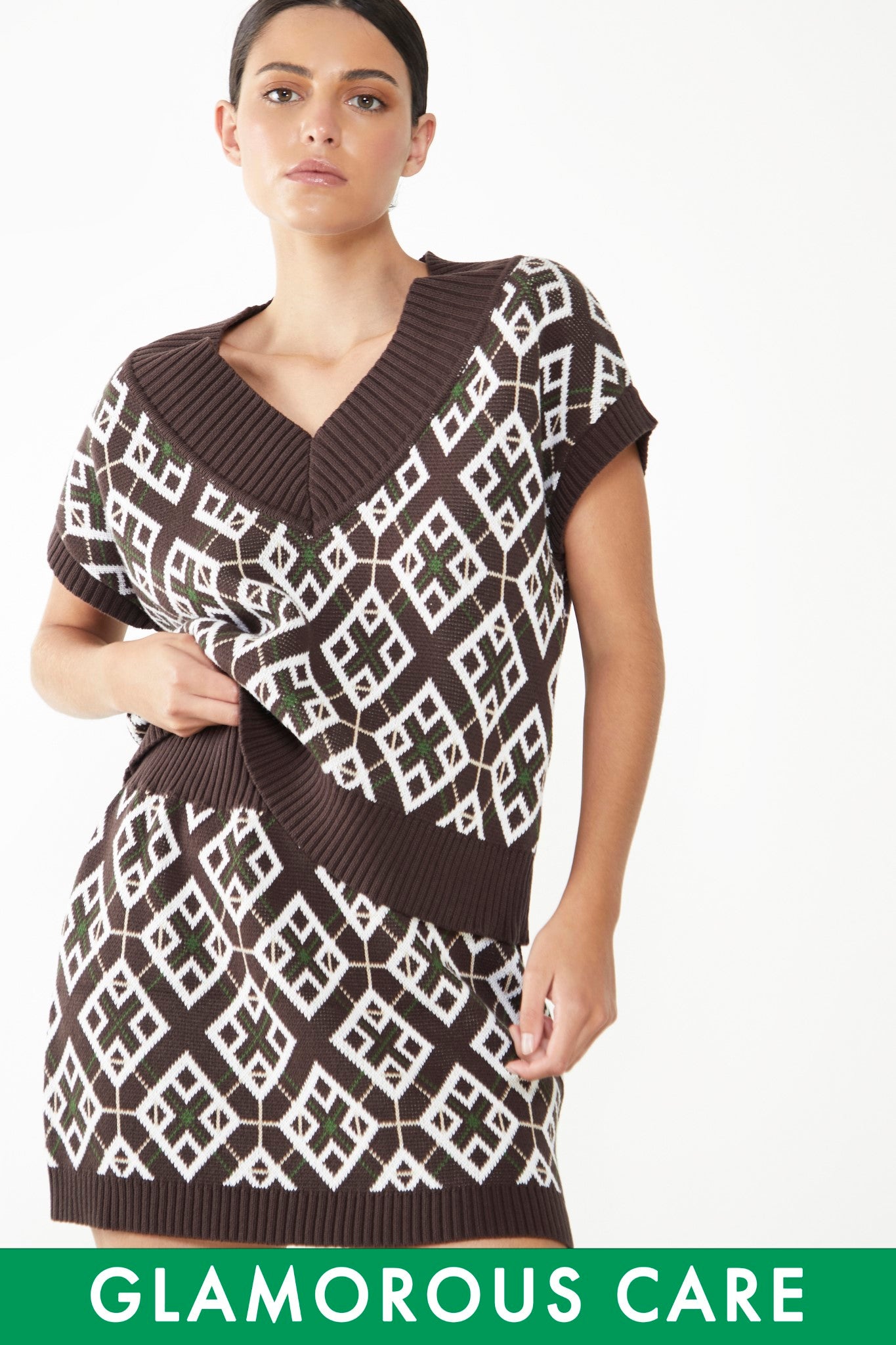 Home WOMENS KNITWEAR Customer Favorite Glamorous Care Brown Geometric Mini Skirt Glamorous – Limited Stock!