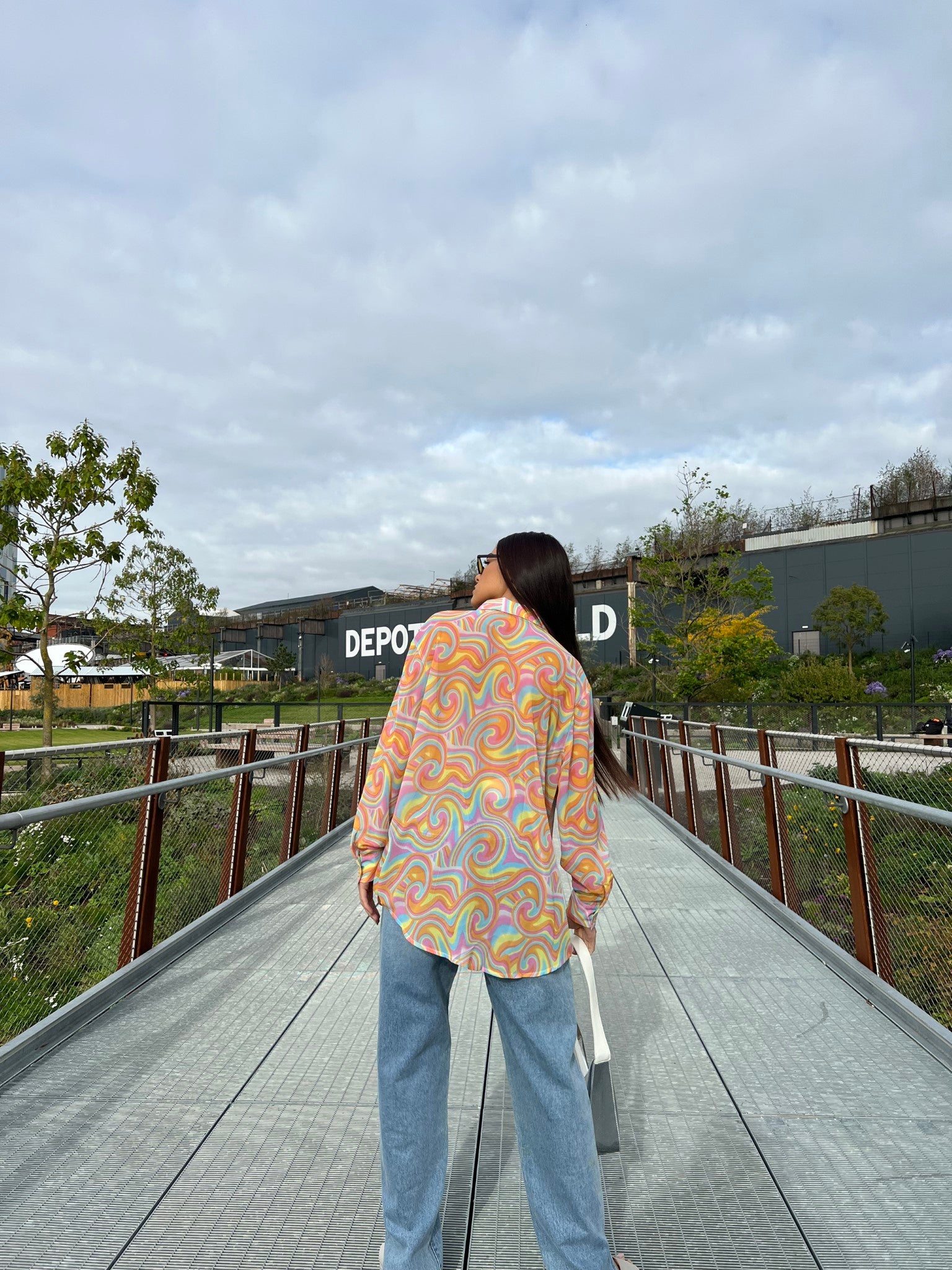 Glamorous Womens Rainbow Swirl Button-Front Long Sleeve -shirt. Fashion forward and chic, we love this statement making shirt here at Glamorous! Featuring button front detail in fun quirky rainbow swirl print, this flattering piece is destined for your wardrobe. Style with your favourite pair of jeans for a colourful daytime look.