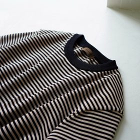The ribbing at the cuffs and hem offers a gentle fit with no tightness, ensuring comfort throughout. Thoughtful details like the stripe pitch and color balance add up to a sophisticated finish.