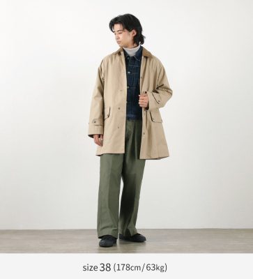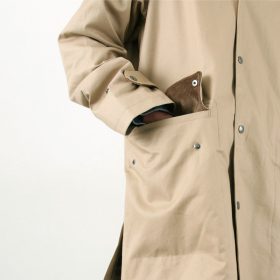 High Density fabric, a natural water-repellent material that is representative of the United Kingdom, is used. This is a high-density fabric made by beating ultra-fine fibers to the limit of their density, and while it is a natural material, it has excellent water repellency and moisture permeability. The bouncy feel of the fabric forms a beautiful silhouette with a sense of elegance.