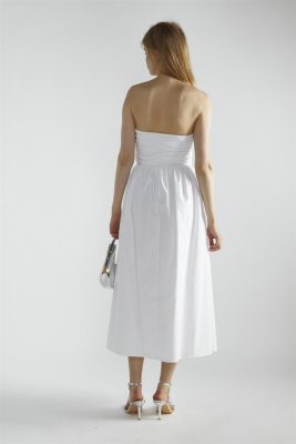 Glamorous Women’s White Smocked Midi-Dresses. Hey there, fashion enthusiast! Let’s talk about this dreamy smocked midi dress that’s about to become your new summer fling. The strapless design is a total showstopper, giving you that sun-kissed glow while keeping you cool on those warm days. The smock shape is like a gentle hug for your body, offering both comfort and style in one adorable package. It’s forgiving in all the right places, so you can indulge in that extra scoop of ice cream without a worry. The midi length hits that sweet spot between flirty and elegant, making it versatile for everything from beach picnics to rooftop parties. This dress is like a blank canvas for your personal style – throw on a denim jacket and sneakers for a casual look, or dress it up with some strappy sandals and statement earrings for a night out. The smocked fabric is not only super comfy but also adds a touch of texture that’ll have everyone asking where you got it. Trust us, this strapless wonder is going to have you feeling like a boho goddess all summer long!
