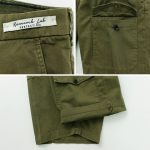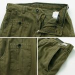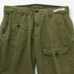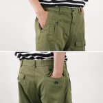 The design follows the bush pants, with pockets on the sides, hips, and both thighs. The pockets on both thighs are particularly distinctive, and the asymmetrical position of the pockets creates a fashionable atmosphere.