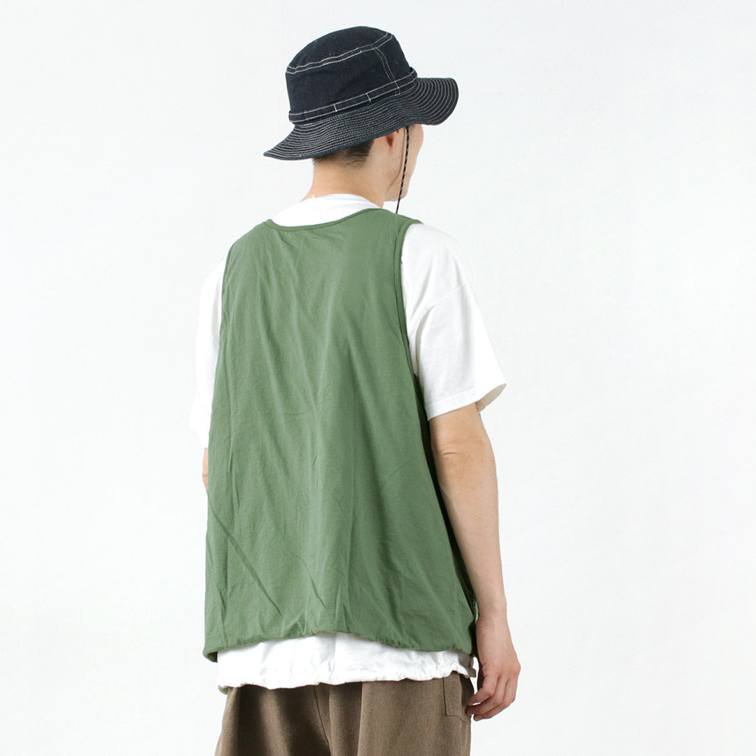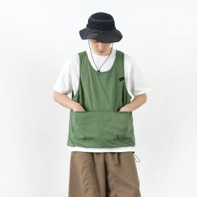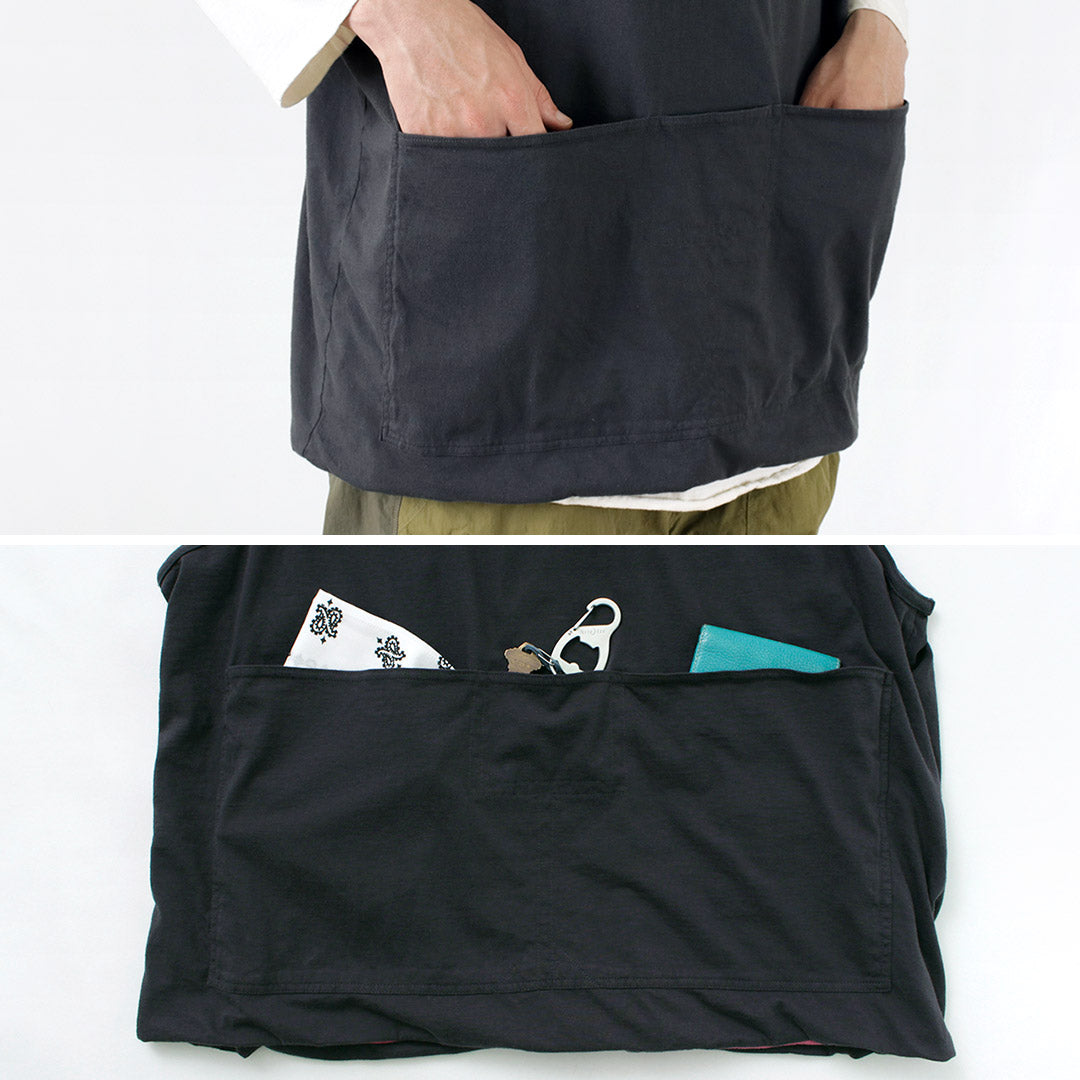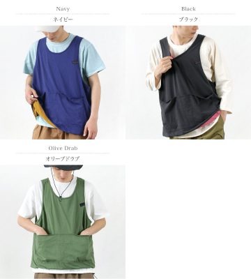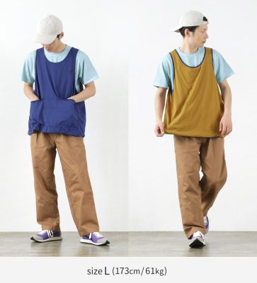 The design is generously sized in both width and cuffs and is equipped with tool pockets that can be used like a waistcoat or apron.