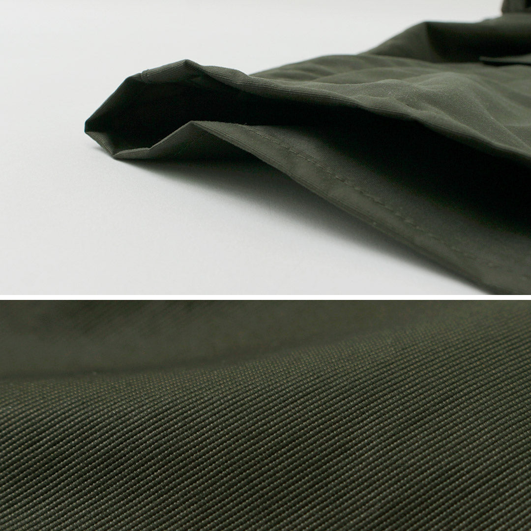 Coated on the back for light water repellency and wrinkle resistance, it’s an easy-to-wear item for outings.
