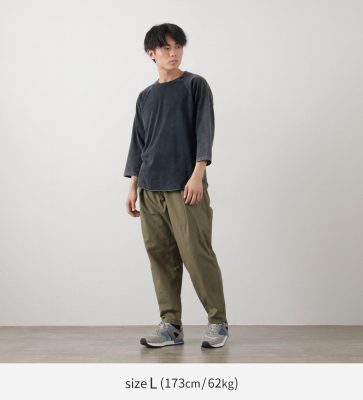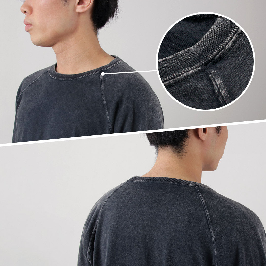 As it has raglan sleeves, the shoulders are easy to move. With a seamless round body on the sides, there is no seam allowance rubbing against the skin, ensuring stress-free comfort.