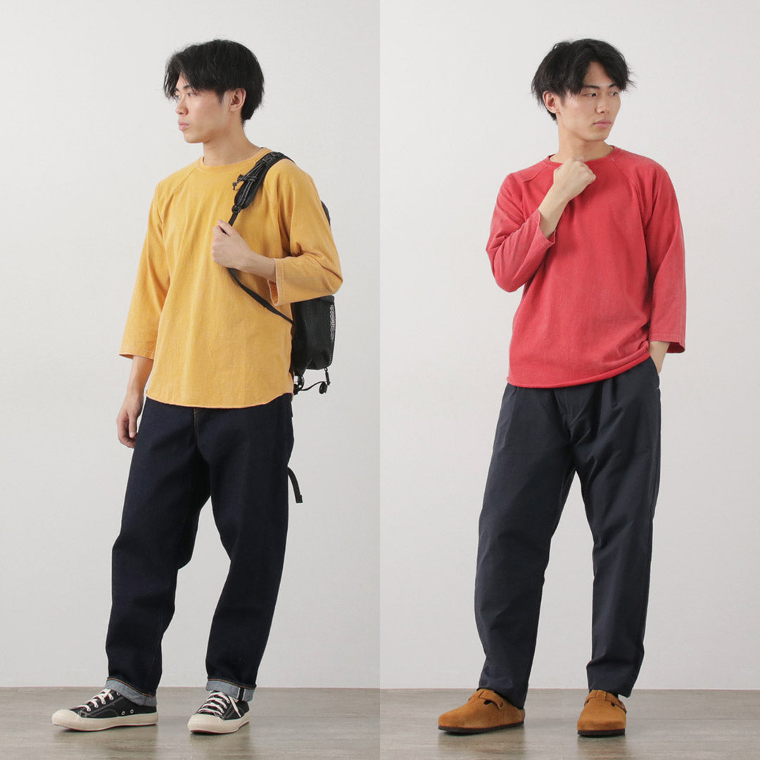 The fabric is made from 5.5 ounces of just the right thickness of American cotton. The fabric, with its soft texture that naturally fits the body and excellent durability, is perfect for daily wear.