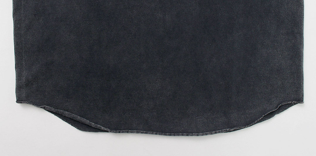 The rounded cut-off hem is finished with lock stitching, exuding a perfect casual atmosphere.