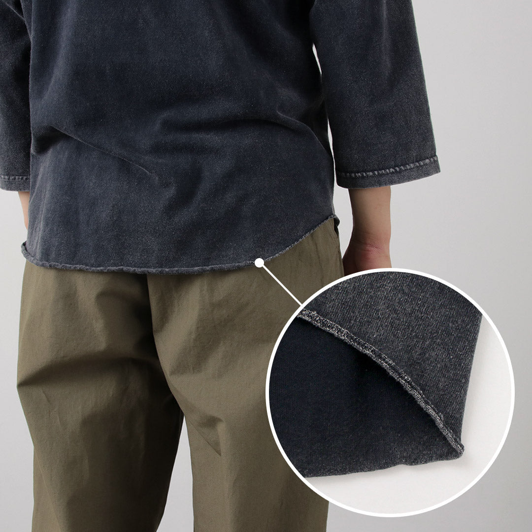 Simple and easy-to-match basic sizing. Perfect not only as a single piece but also as an inner shirt for shirts or outerwear. Please enjoy the piece that reflects the brand’s commitment in all aspects, from material to pattern and dyeing.