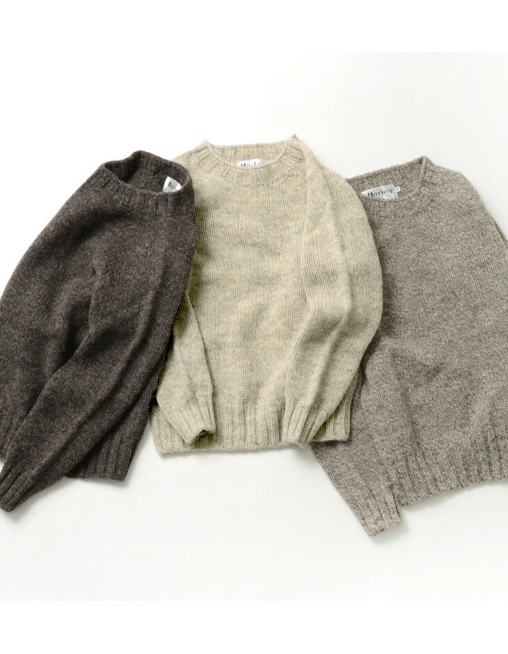 Harley of Scotland’s ecological range of undyed sheep’s wool in its original colour. It is a light, warm material of very high quality due to the harsh environment in which it is grown. The fluffy finish means that there is plenty of air between the fibres to create warmth and keep out the cold. The knit is also very durable, light, very soft and breathable.