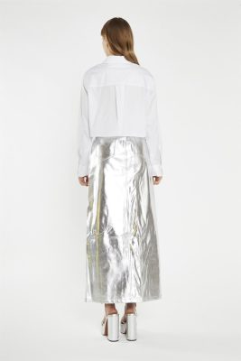 Exclusive Silver PU Centre-Split Midi-Skirt Glamorous – Going Fast!