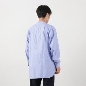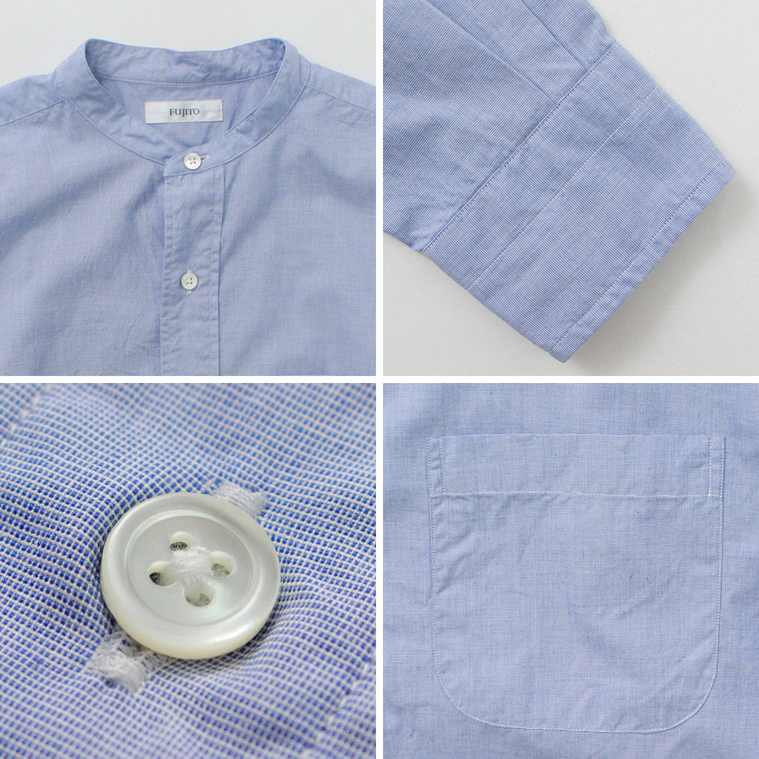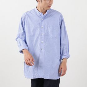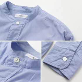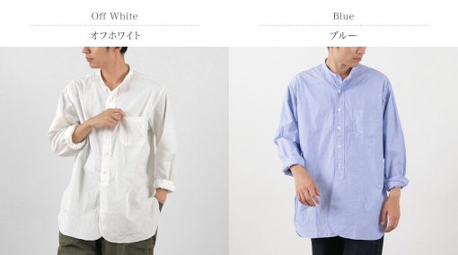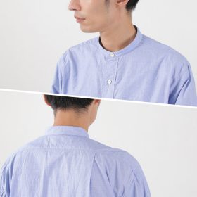 The design is based on a British military officer’s shirt from the 1940s. The neck features a band collar for a fresh and cozy look.