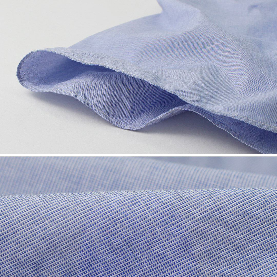 The shirts are sewn by skilled artisans at a workshop specializing in shirts in Karatsu, Saga Prefecture, and the fine stitching (24 stitches every 3 cm), koba stitching, and fold-down stitching give the shirts a dress-like quality despite their casual appearance.