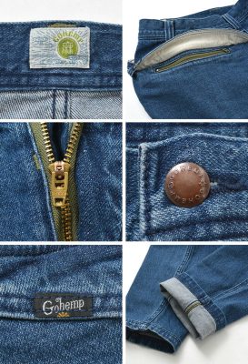 The fabric used is woven and knitted from hemp. The fabric used is our original hemp blend denim, woven with hemp. The fabric is an original hemp blend denim woven with hemp.