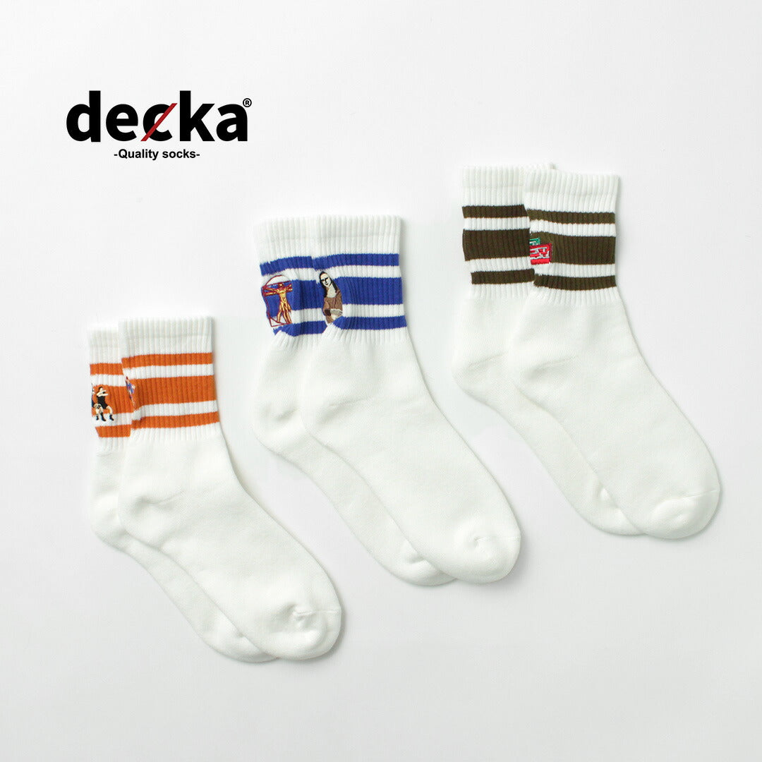 Founded in 2017, DECKA is a Japanese sock brand that embraces the idea of not having a fixed worldview or values, which is considered part of its identity. The brand continues to create socks that can blend with diverse values as part of your clothing.
