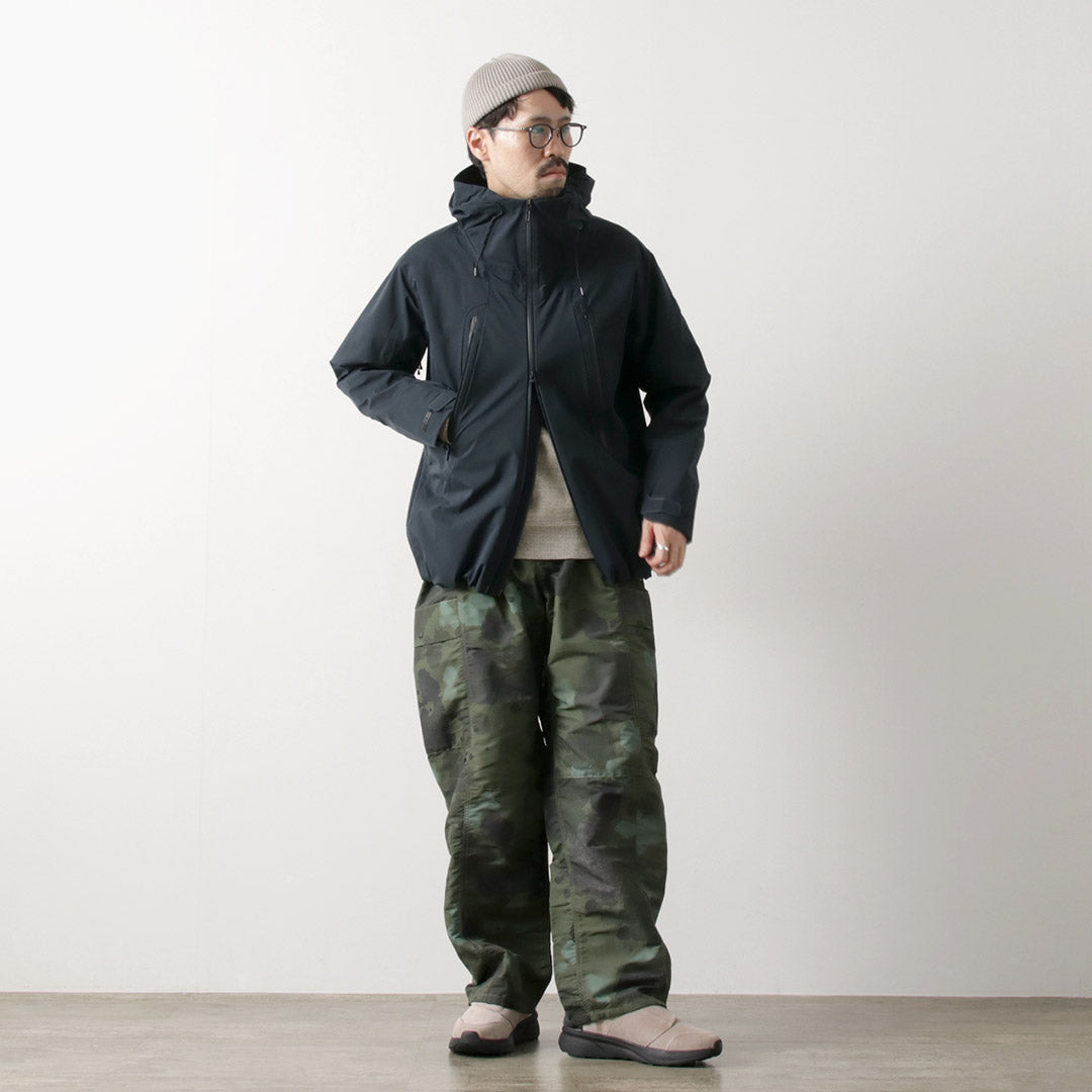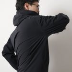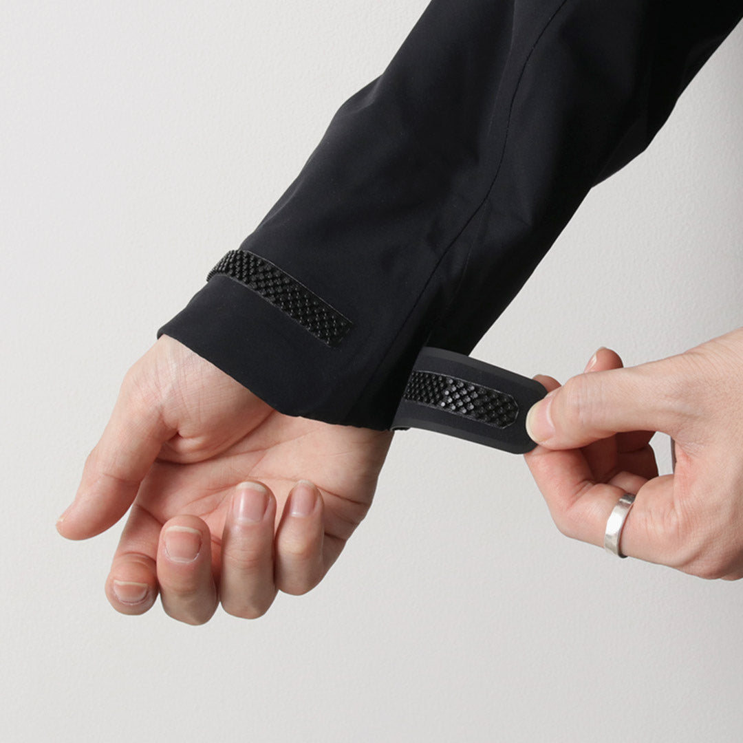 The hem features the “Cohaesive Cord Lock System,” which integrates the fabric and drawstring into one unit using a special part. A simple press releases the tension, making it easy to adjust. Since it is hidden, there is no risk of the cord catching, and it maintains a clean, sleek look.