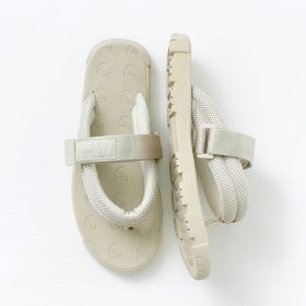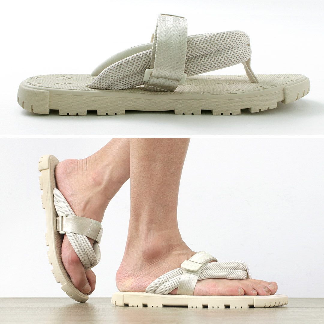 Double mesh is used for the snout for a gentle feel against the skin. One strap on the instep overcomes the weak point of thong sandals in terms of holding the foot in place. By enhancing the fit, it realizes a comfortable walk from outdoor to city wear.