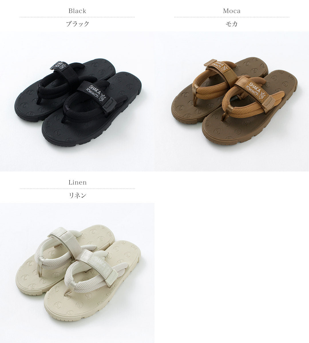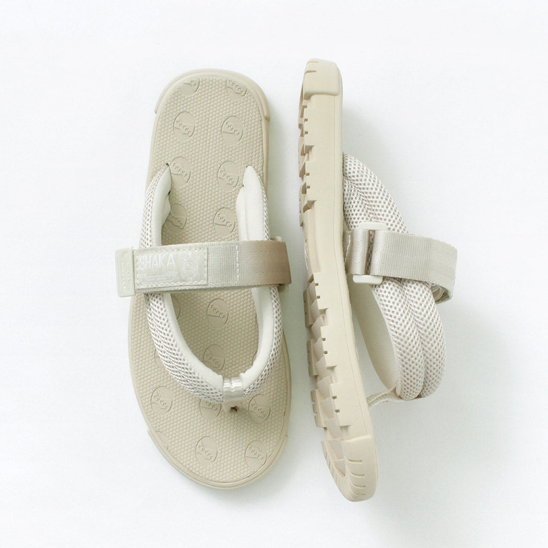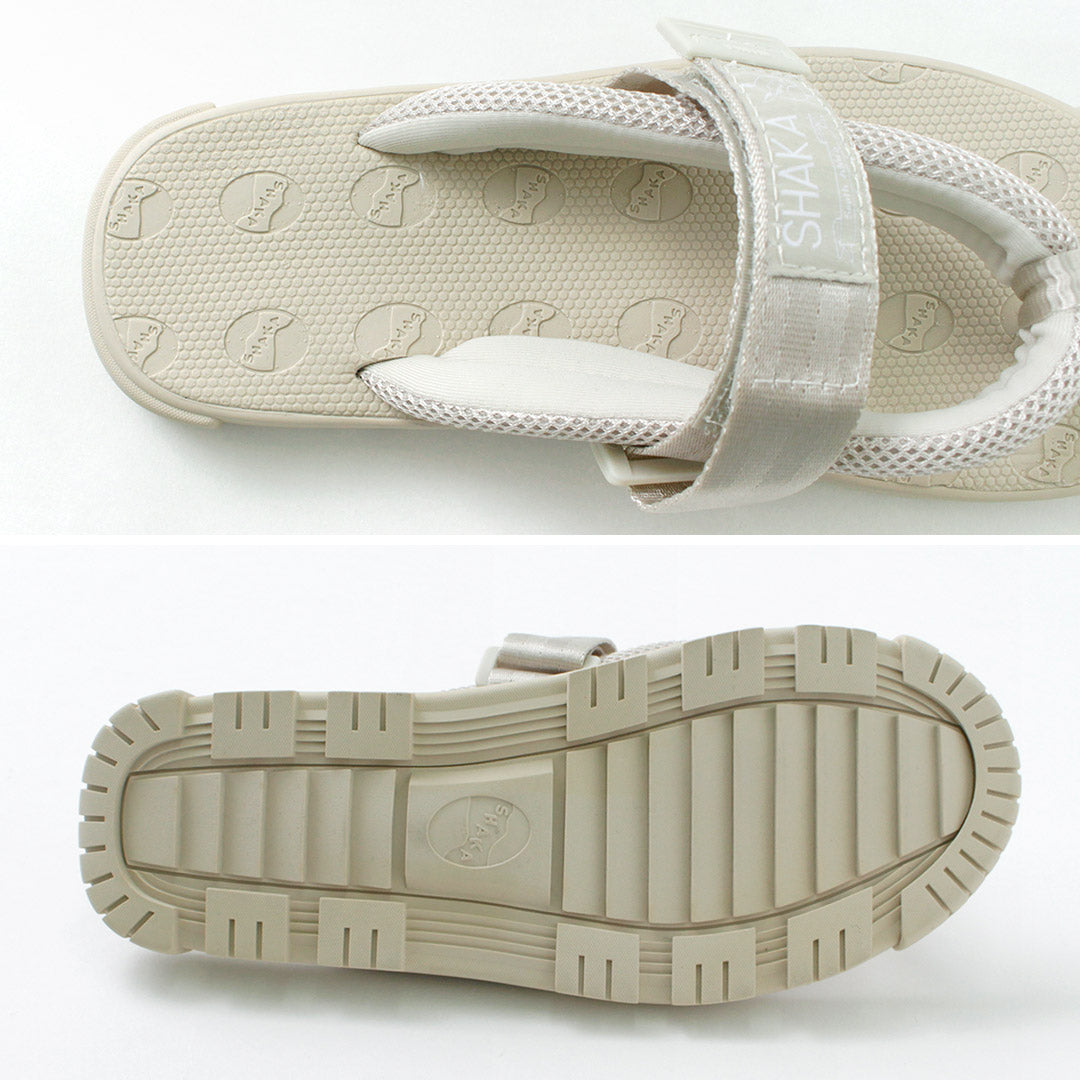 The SHAKA sandal features a thong design with an instep strap for an improved fit. The thin yet highly cushioned BF SOLE supports a comfortable walk.