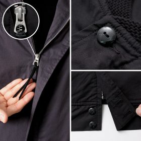 The front zipper is made by the American brand IDEAL, with leather zipper pulls and buttons at the top and bottom adding subtle yet striking details.