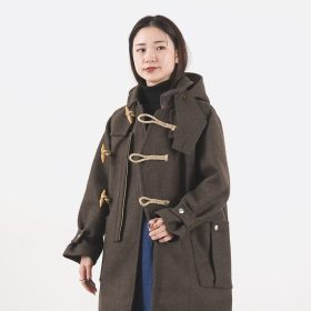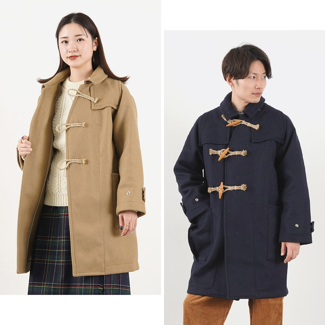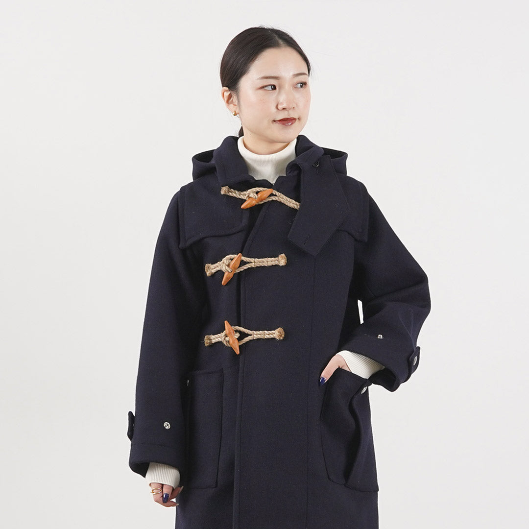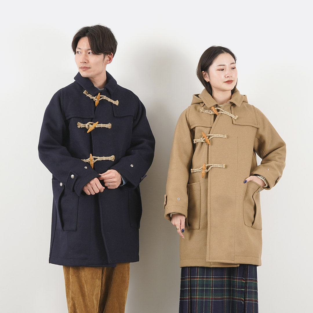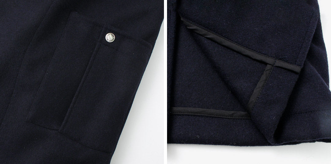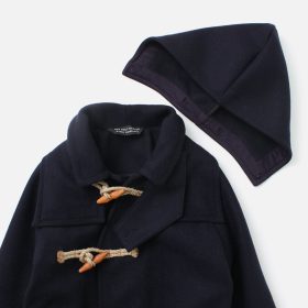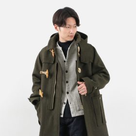 Japanese-made duffle coat born in Tohoku, where the four seasons are abundant. This coat is made of “Ultra High Density Melton”, a field-use melton that is both water-repellent and windproof, and can cope with even the harshest nature. The toggle, the face of the duffle coat, is made by “KELLYBOCK” from Tsuyama, Miyagi Prefecture. The feature of this product is that it is carefully shaved and shaped one by one by skilled craftsmen. You will enjoy the design that is not influenced by the