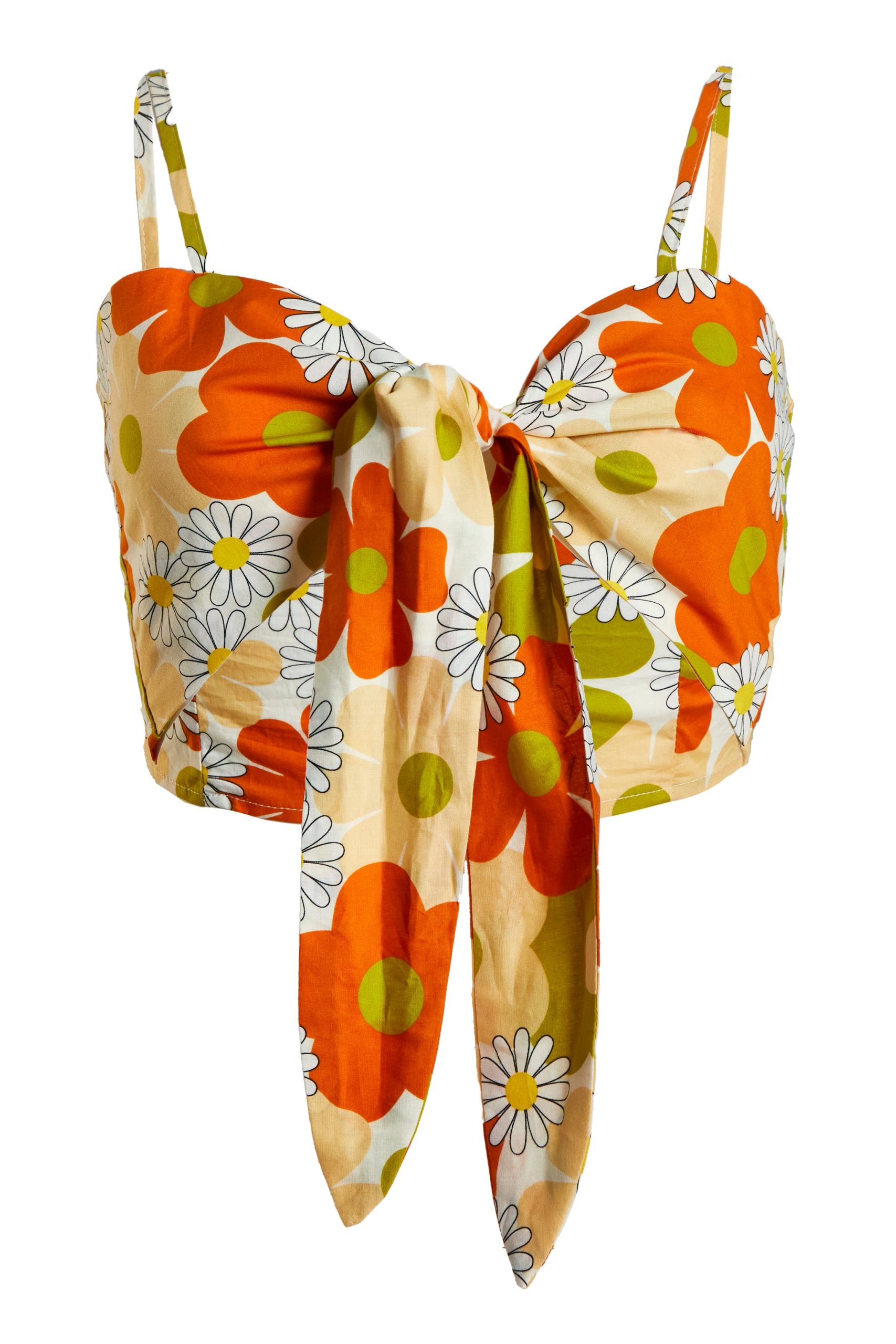 Glamorous Care Retro Daisy Floral Tie Front Strappy Crop Top. Stylish and chic, we can’t get enough of this new season floral print. Featuring a gorgeous tie front detail and cami straps, we love this piece here at Glamorous. Pair with the matching shorts for a fashionable co-ord moment.
