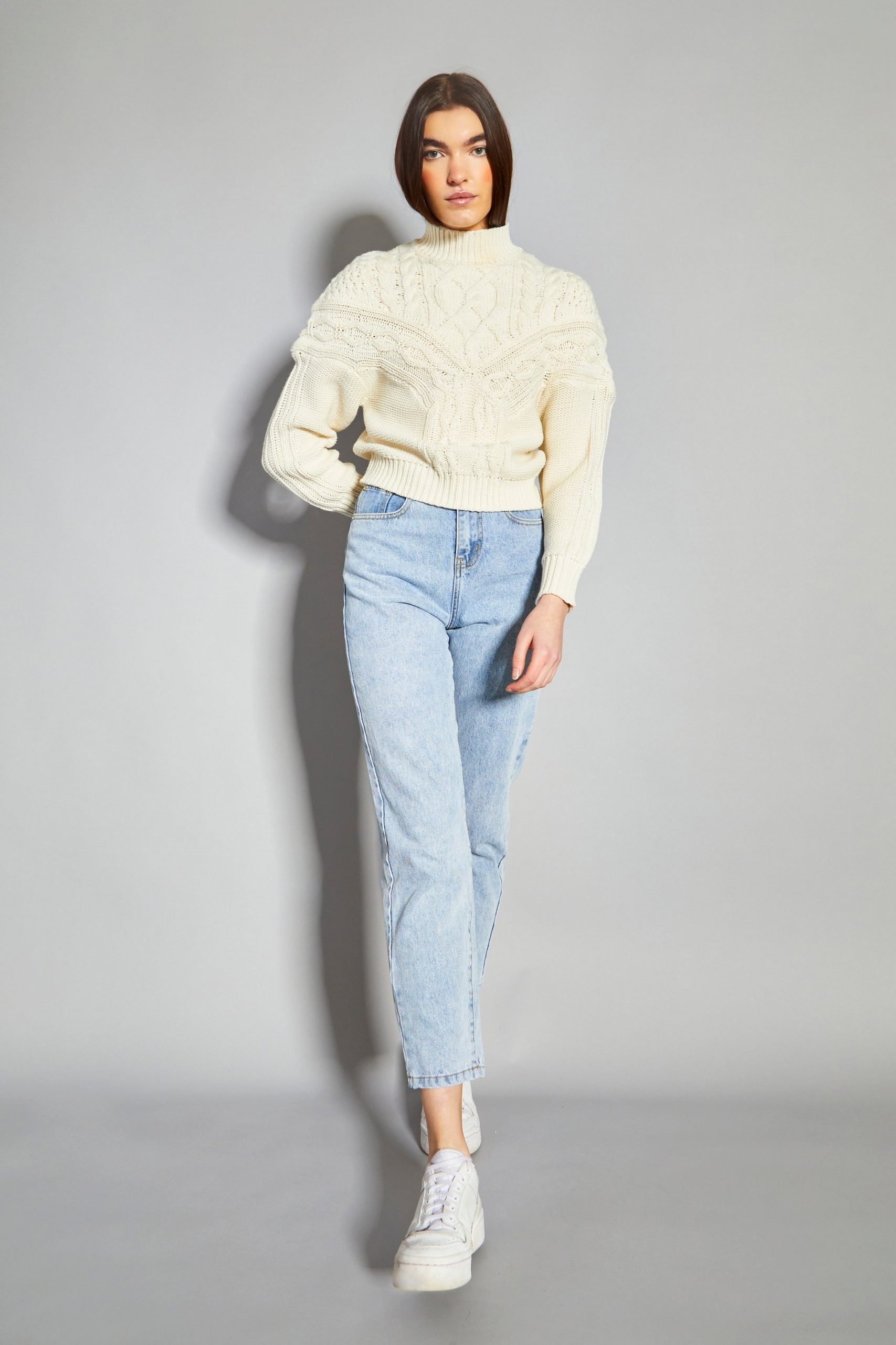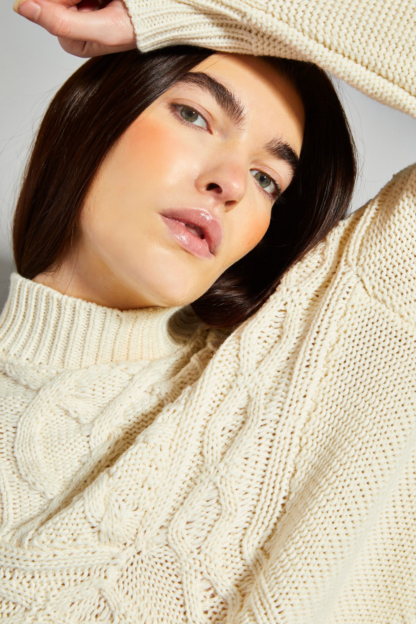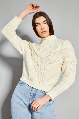 Home WOMENS KNITWEAR Insta-Worthy Glamorous Cream High Neck Cable Knit Jumper Glamorous – Stylish & Comfortable