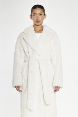 Glamorous Women’s Cream Faux-Fur Longline-Coat. Wrap yourself in the ultimate in cozy luxury with our Cream Faux-Fur Longline Coat. This plush and indulgent piece is crafted from a sumptuous faux fur fabric that envelops you in softness and warmth. The longline silhouette provides ample coverage, while the classic lapel collar and waist-cinching belt add a touch of refined polish. Whether you’re dressing up for a night out or keeping it casual, this versatile coat is the perfect way to elevate any ensemble. Slip it on over your favourite outfit and let the luxurious texture and flattering fit make you feel confident and comfortable. This coat is a true cold-weather essential that will have you looking and feeling your best all season long.