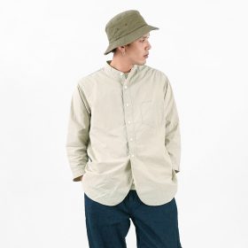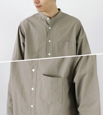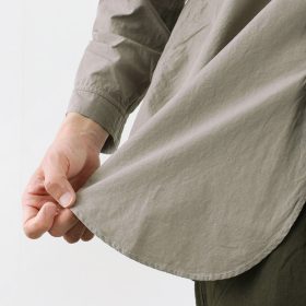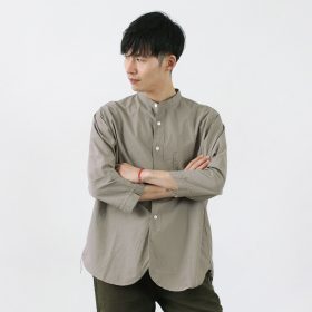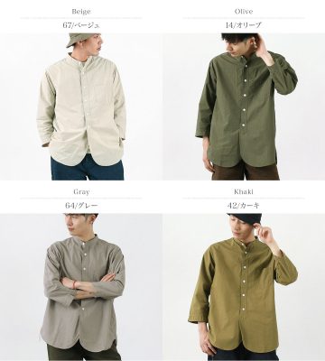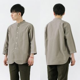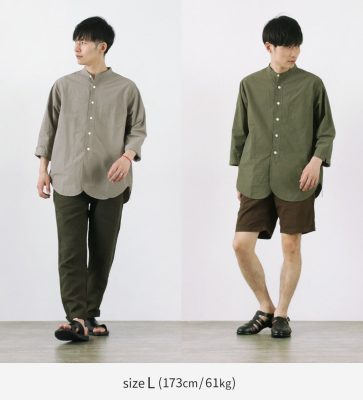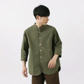 FOB FACTORY’s popular oxford band collar shirt has been specially ordered in a linen blend military downproof fabric so that it can be enjoyed in spring and summer as well. This 7/10 sleeve shirt has a smooth and silky feel due to the dense weaving of fine yarns and a thin but resilient fabric texture.